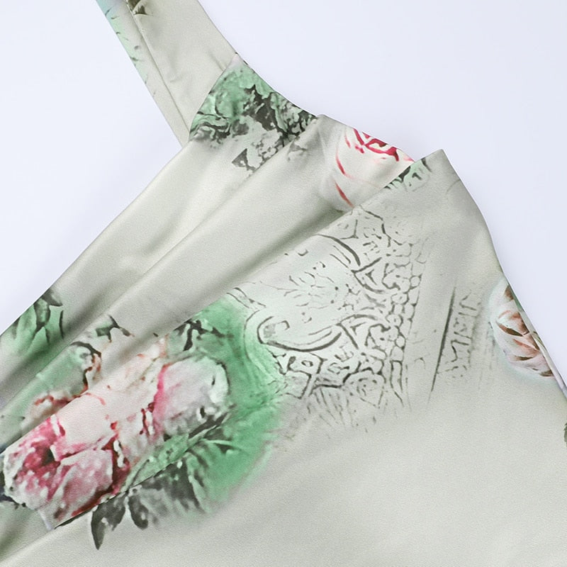 El conjunto "Yleniade gasa combina elegancia y sensualidad. Incluye un top ajustado con espalda cruzada y una falda larga con una abertura alta en el lateral, ideal para destacar las piernas. Su estampado floral añade un toque romántico y delicado, perfecto para eventos especiales.